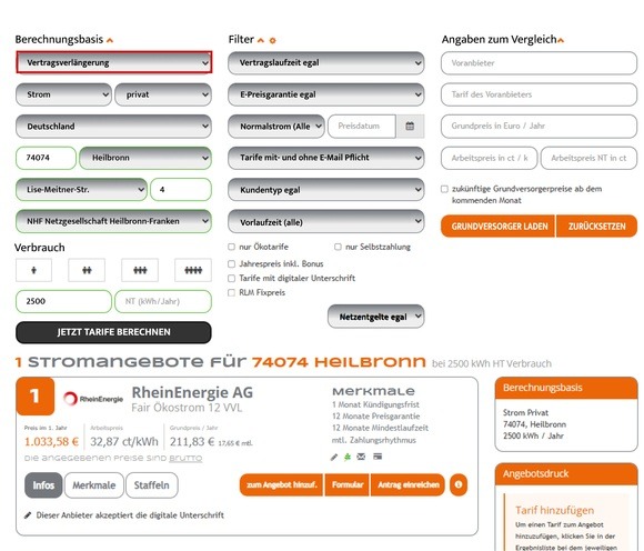 Wichtig: Für Neukundenfälle (Einzug oder Wechsel) bleibt alles wie gewohnt – der Tarifrechner ist so konfiguriert, dass keine Auswahl im Dropdown erforderlich ist.